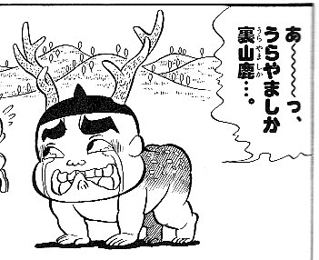 ・忘れちゃならない感覚。これを表現するコマ絵が茶魔語としてぴったりしていて素晴らしい。反対に、いいなけつ、裏山鹿は、こじつけさが可愛らしい。