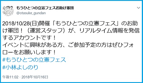 「もうひとつの立憲フェス」お助け軍団Twitterアカウント