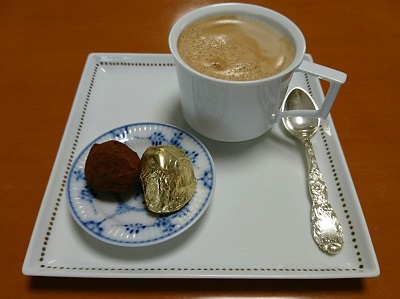 食後のコーヒーはチョコレート付きです。
