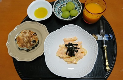 今日の昼食は、マスカルポーネと明太子のパスタと、