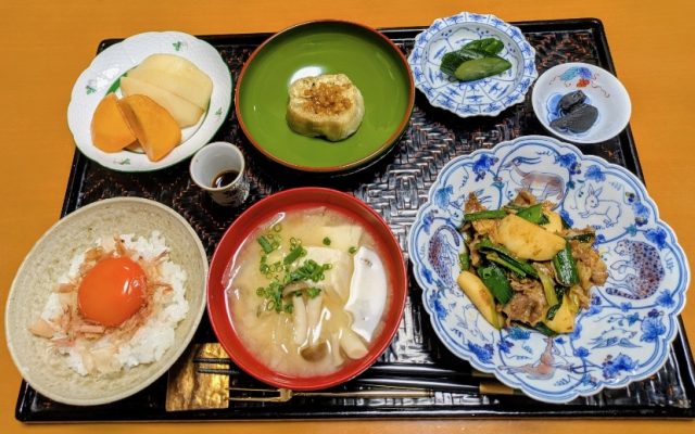 *山芋と豚肉·にんにく葉の柚子胡椒炒め