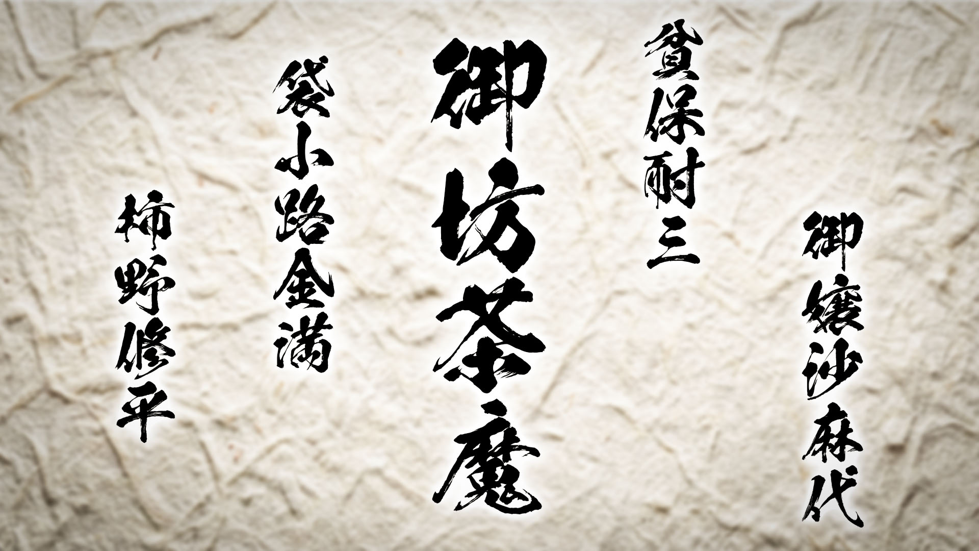 また、鬼滅のアニメで実際に使用された毛筆フォント(KSO闘龍)でおぼっちゃまくんのキャラ名を書いてみても、こちらも不思議なほど違和感なくハマります。