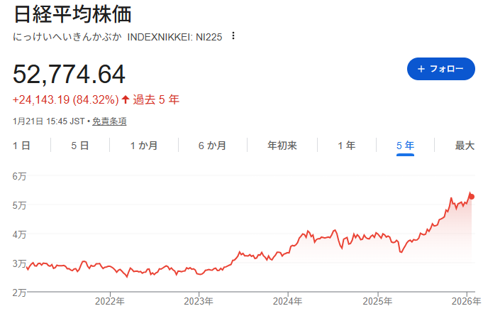 経済のニュースを見ていると、株価の動きを虫眼鏡で拡大して、高市早苗が首相になった際に株価がぴょんと飛び上がった現象を取り上げています。