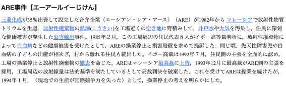 ※④)マレーシアで1980年代に発生したARE事件の現状報告(ノーニュークス・アジア・フォーラムジャパン)https://nonukesasiaforum.org/japan/archives/1045