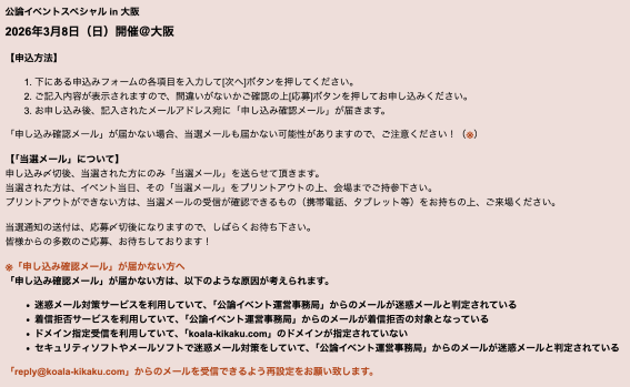 会場の詳細情報もここに記載してありますので、よく読んでお越しください。