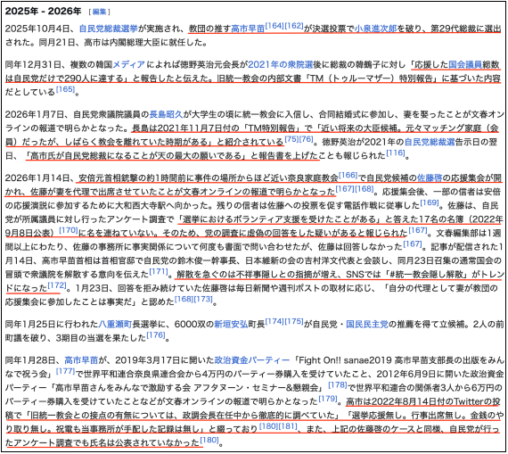 ※⑥)世界平和統一家庭連合と政界との関係(Wikipedia)