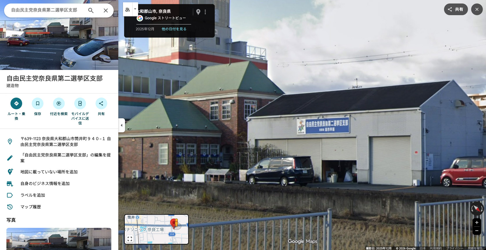 Googleのストリートビューで見ると、(Veanas合同会社が本店登記している)自民党の奈良県第二選挙区支部ってこんな感じの建物。