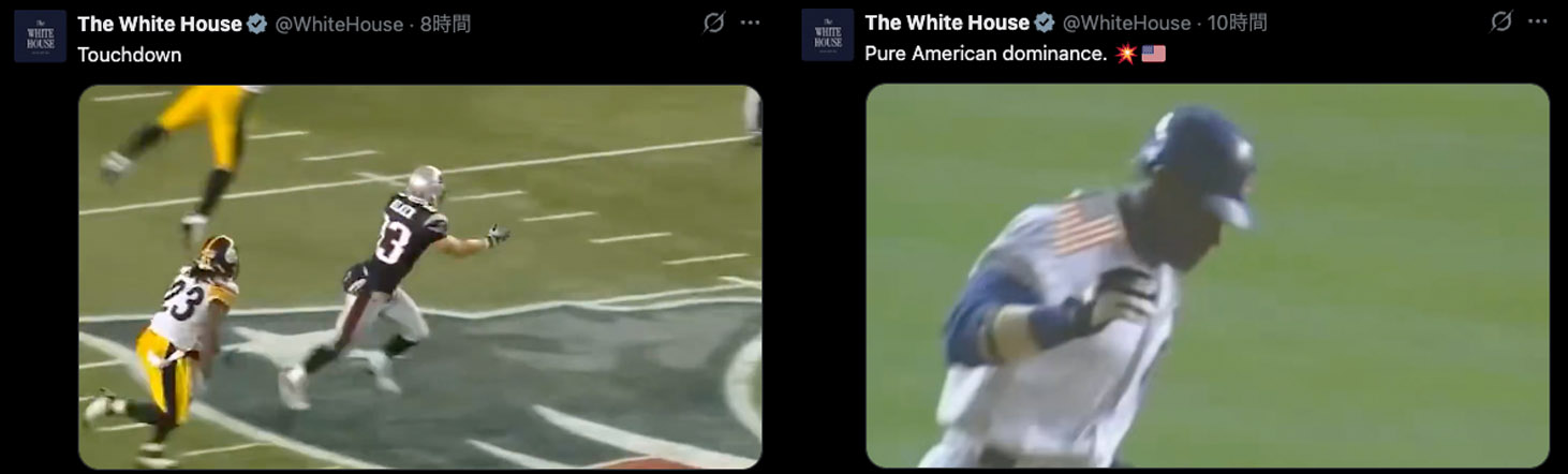 まずアメフトや野球の試合映像を流し、