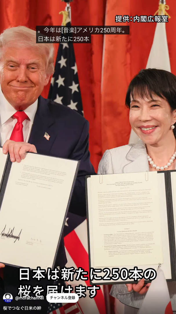 外務省のYouTubeで「桜でつなぐ日米の絆」というムービーが公開されています。